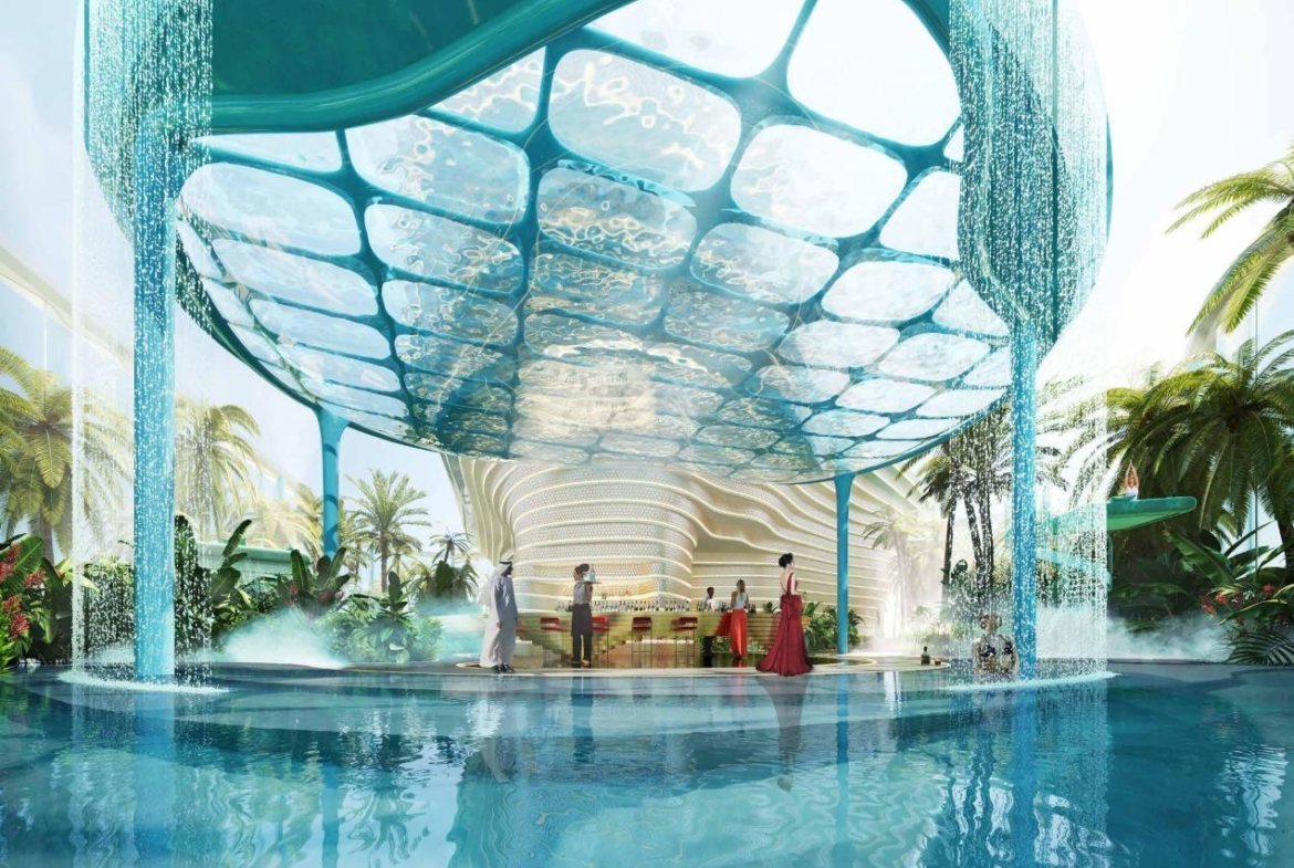 The podium rooftop features an artificial beach and a multitude of cabanas, and hydrotherapy amenities, including an oasis lap pool. Immerse yourself in an island-styled pool, ascend to new heights of relaxation at the chillout lounge and on sky floating beds, and discover unique aqua art installations that create a sensory experience like no other.