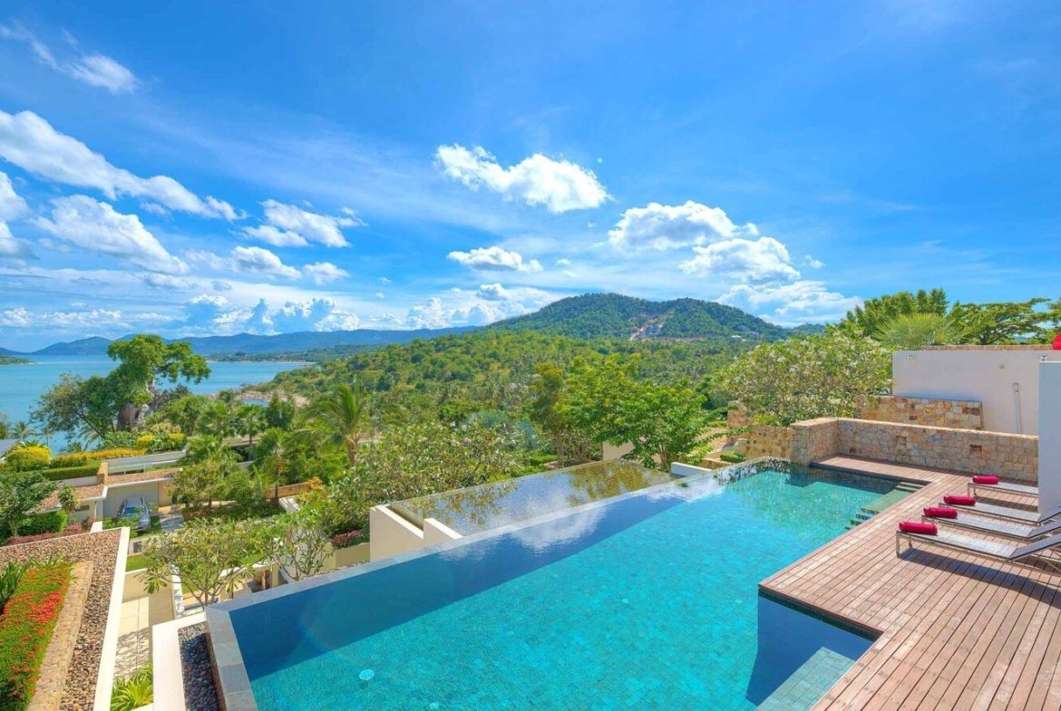 Villa Samujana 15 has four large en-suite bedrooms with king sized beds, all with freestanding baths and separate showers. Stay in a luxury family villa for an unforgettable holiday. The open plan living area is fronted by a large infinity pool and offers an enclosed private gym with stunning views over the bay. Each bedroom has an outside seating or daybed area for quiet time or your daily yoga routine. There are two sun deck areas above the lounge for those wishing to worship the sun during their stay or enjoy a sunset cocktail. For keen cooks there is a fully operational outdoor kitchen and BBQ area. The home cinema is equipped with a large plasma screen, DVD player and surround sound. A large garden is great for five-a-side football or badminton if you need a break from lounging by the pool.