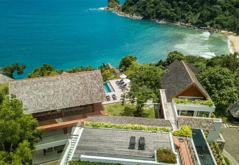 Villa Santisuk is a beautiful, five bedroomed contemporary styled villa with clear Asian influence, situated at the top of a private oceanfront estate facing west towards the open ocean with amazing 360 degree and sunset views over the Andaman Sea.